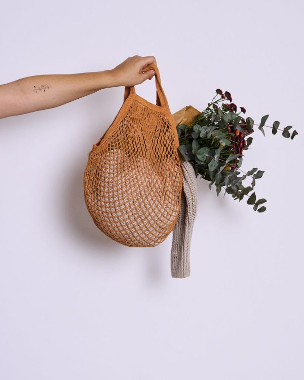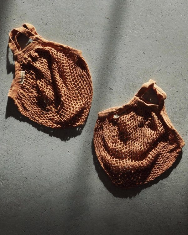 THE ORGANIC SHOPPING BAG DIED WITH VEGETABLES You don’t need no plastic bag to put your fruits and vegetables in when grocery shopping. Just take this beautiful organic net bag with you! It is made out of 100% GOTS-certified organic cotton/Bio-Baumwolle and is vegetable died, by pomegranate, flame of the forest and the