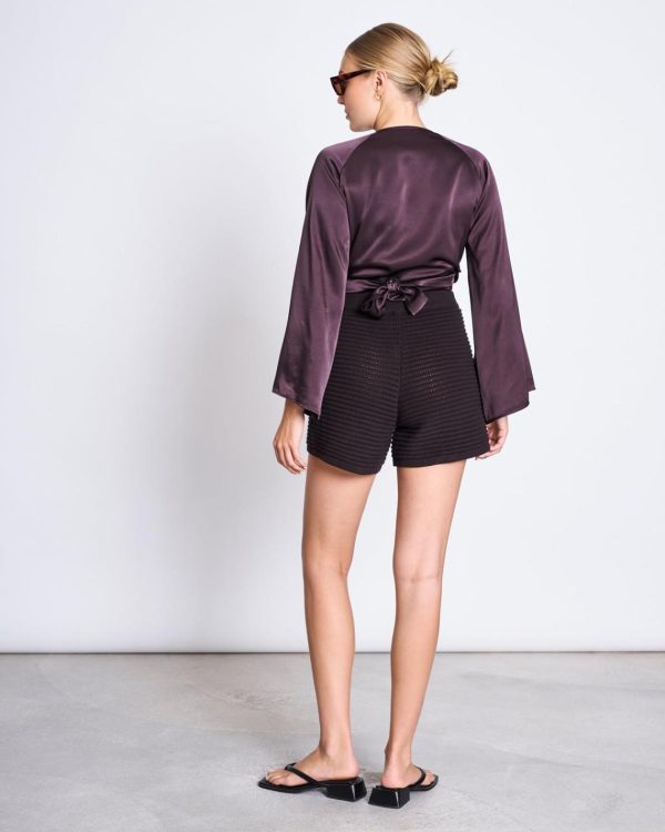 wrap yourself up You know this cut already and it seems like you loved it (at least we loved it, tha’s for sure). CARRINE has a deep V-neckline at the front and can be wrapped at the back.So here it is, appearing in a new material aka. viscose satin instead of recycled polyester this time. The material is super flowy