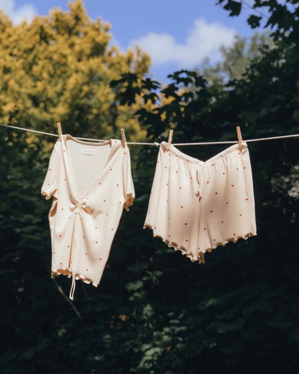 Look cute whilst hitting snooze This is our Ribbed Pyjama Shorts AMORE from our collaboration with Kiki <3 The pants are made of a smooth and thin organic cotton and elastane mix, to make it extra comfy. The whole collection is mix and match. So, find you perfect set and get cozy. FYI: This product is just the short