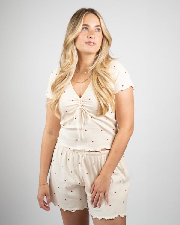 Look cute whilst hitting snooze This is our Ribbed Pyjama V-Neck Shirt AMORE from our collaboration with Kiki <3 The shirt is made of a smooth and thin organic cotton and elastane mix, to make it extra comfy. The whole collection is mix and match. So, find you perfect set and get cozy.FYI: This product is just the t
