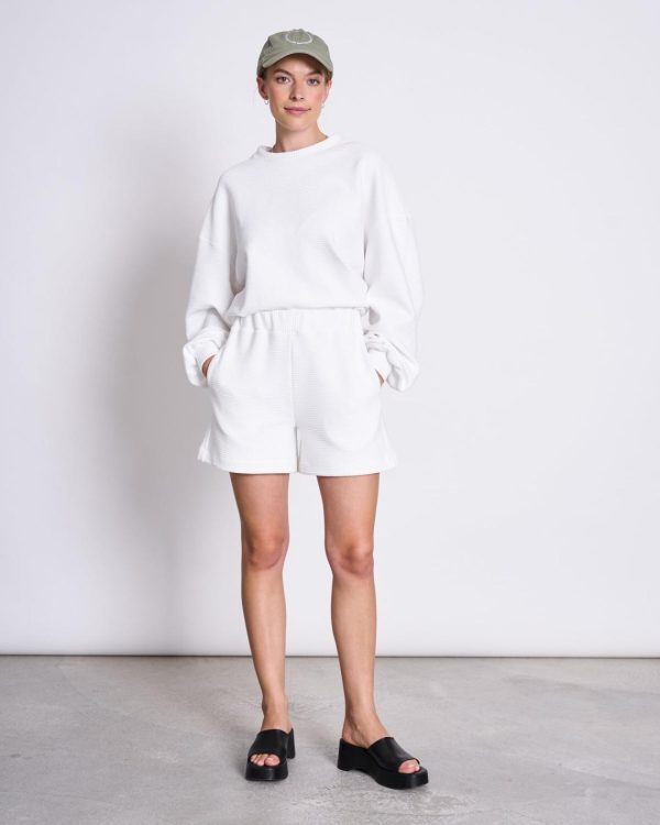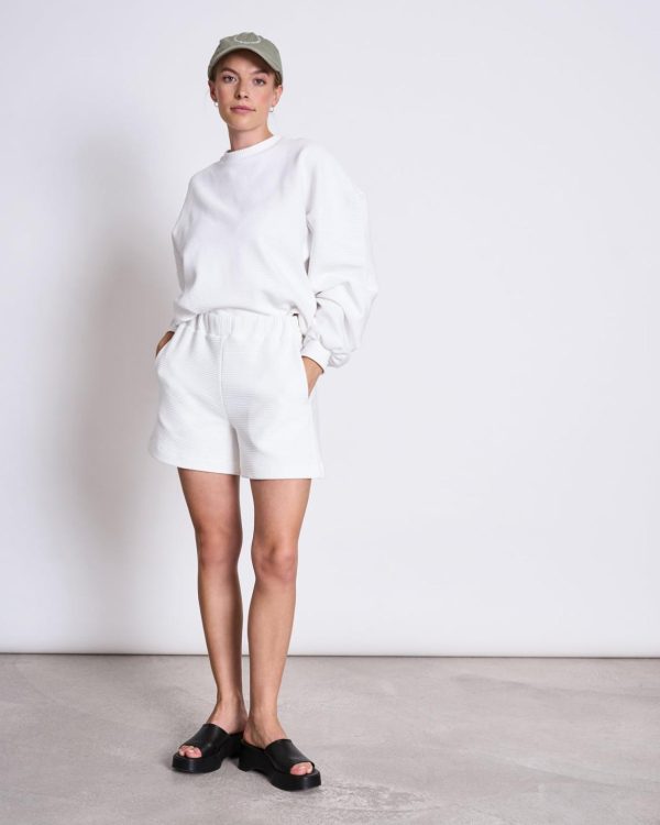 LELITA is our wide shorts made of our Ottomane Interlock fabric. We love the suddle look of the horizontal lines, that gives every piece a super straight look, no matter how loose and comfy the cuts are. LELITA is made of 98% organic cotton and 2% elastane.